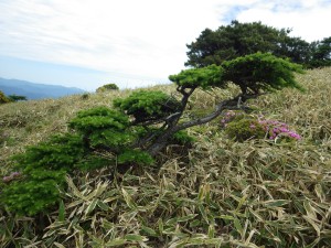 | ミヤマキリシマが続く | 結構群生している | 形の良いカラマツ |