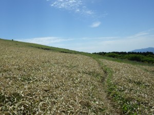 | 九重連山を見ながら降る | 青空が広がる | ミソコブシ山の下をショートカット |