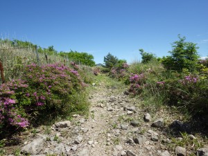 | 狭い尾根道 | 斜面にミヤマキリシマがチラホラ | 近づくと結構ある |