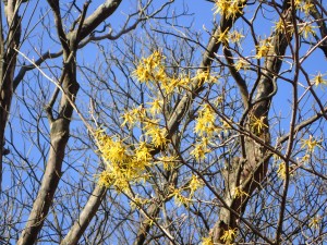 | 登山届を出して出発 | コンクリートの道をしばらく歩く | 早くもマンサクの花が見れる |