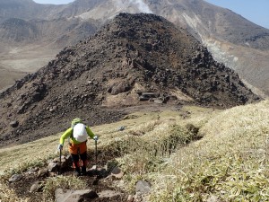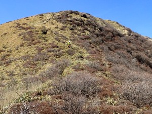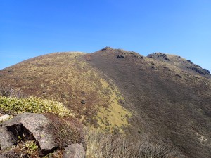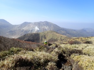 | 北峰と大鍋 | 南峰、奥に平治岳 | 南峰を目指す |