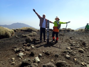 | 右はW峰、左に進む | 後ろのピークはW峰 | 本峰にて(11:15)ランチタイム |