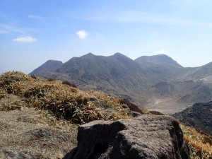 | 黒岩山・泉水山、奥に涌蓋山 | 中岳や久住山を見渡す | 広い西峰 |