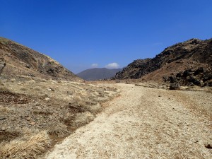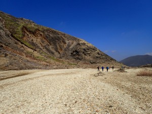 | 法華院温泉山荘を目指してガレバを降る | 北千里浜に出る | 砂地を気持ち良く歩き始める |