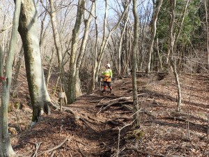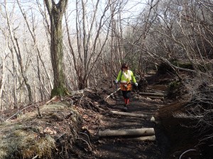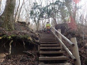 | 谷間を横断 | ここにもマンサクが | 木の階段 |