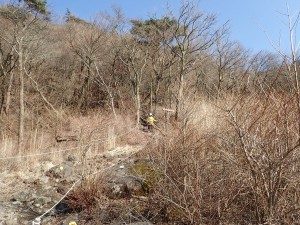 | この機械の横を降る | 急斜面を慎重に | 無事すがもり小屋跡(13:25) |