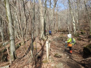 | 斜面にはマンサクが多い | マンサクの花を見ながら | 降って行く |