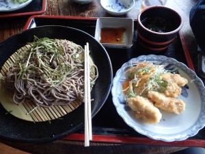 | とり天にざるそば | 駐車場はたくさんの車が | 映画にもなった名犬「平治」(12:34) |