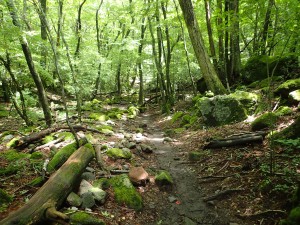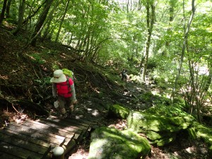 | 本格的な登山道 | 巨石もある | アジサイもたくさん咲いていた |