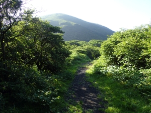 | 大船山が見えてきた | ぬかるんだ道 | 立中山に白口岳が見えた |