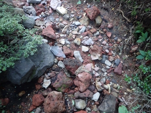| 念のためヘルメットを | 今にも落ちそうな岩だ | とにかく暑い |