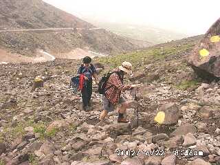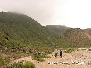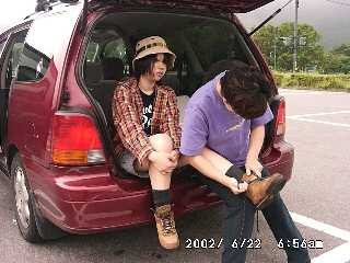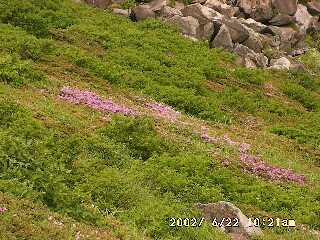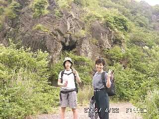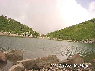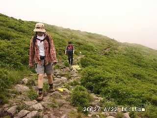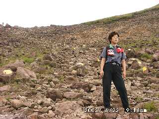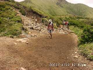 2002/6/22 天気 晴れ 今回は、長女を連れて九重に行くことにしました。午前6時30分、長者原に着いた私たちは、登山に慣れていない娘に靴紐の結び方を教えて出発です。「眠たい」と言いながらも空気のおいしさに元気がでたようで軽い足取りで先を急ぎます。砂防ダムを過ぎたところから登山道がありますが、今回はちょっと遠回りだけど歩きやすいので林道を行きます。星生山を横に見て「すがもり小屋跡」までひと登りします。「すがもり小屋跡」で鐘を鳴らし休憩をして北千里浜を久住山に向かいます。北千里浜はガスの発生があるので注意が必要です。しばらく平地を歩き急坂を一気に登れば久住分れに到着です。「すがもり小屋跡」から約40分です。久住分れから今度は中岳を目指し北千里浜を左手に見ながら回り込むように進んでいきます。 今日は御池で食事をし、下山することにしました。帰路は牧野戸まで行きバスで長者原に戻ります。バスは少ないので注意 今日のコースタイム 長者原駐車場-(90分)-すがもり小屋跡-(40分)-久住分れ-(30分)-御池-(50分)-扇ケ鼻分岐-(60分)-牧野戸-バス(20分)-長者原 バスは 牧ノ戸バスでちょうど良いのは 13:10分発 14:20分発 290円 所要時間約20分 ※時間や金額は2002年6月現在のものです 利用される場合は念のために御確認ください |