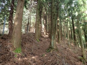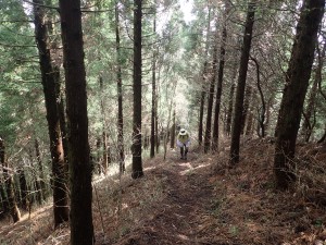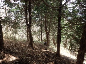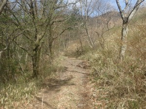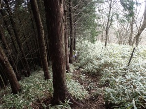 | ここは右手に | 牧野道終点から尾根にとりつく(9:44) | 杉林の尾根道 |