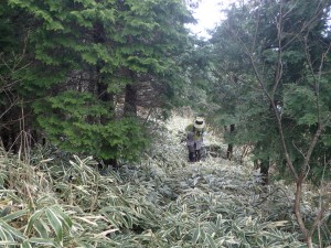 | 振り返る | 鞍部から黒岳を見る | スズタケ漕ぎが続く |