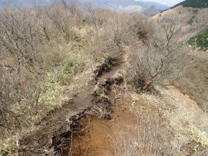 | 左側が崩落している | 花牟礼山頂上(10:31) | 分岐から「ながみず山」目指す |