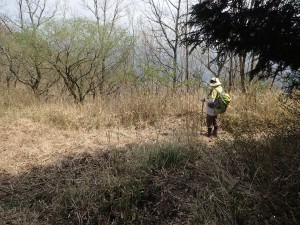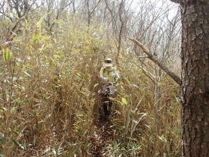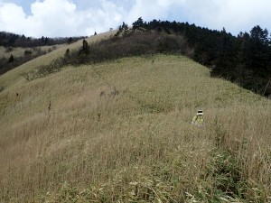 | ながみず山を背に | ひたすらススキの中を歩く | スズタケ漕ぎを終えて振り返る |