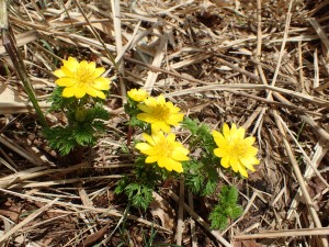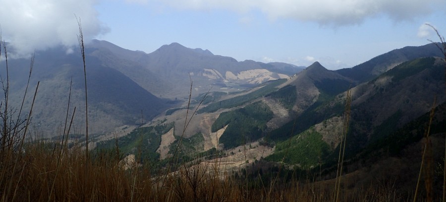 平成29年4月16日(日) 天気晴れ ■出発時間:6時頃(自宅) ■メンバー:家内と二名 フクジュソウの自生する山と言えば、九州では「仰烏帽子山」か「岩宇土山」なのだが、北九州からだと登山口まで行くのにかなり時間がかかる。そこで近場でないかとネット検索すると花牟礼山がヒットした。私は過去2度訪れたことがあるが、家内は初めてである。 それならばと言うことで良く調べることに。フクジュソウは花牟礼山から続くながみず山への従走路に自生しているとのこと。 もちろん場所の特定しているホームページはない。とにかく歩いてみるしかない。 ただ、少々気になってたのはスズタケ漕ぎがあるとのこと。 自宅を出てコンビニで食料を調達し、東九州道から大分道は由布I.Cで降りる。ナビに従い南下する。国道から湯平温泉へと進み、花牟礼山への登山道の標識から林道に入る。 狭い道は高度を上げ、駐車スペースに車を停める。先客は3台の車。 ここから黒岳、大船山が顔を覗かせている。 この辺りは牧場なので作業道は「牧野道」と呼ぶことにする。(これはガイドブックにある) 牧野道はジグザグに続く。桜の木も多く、タラの木もある。(残念ながら芽はほぼ摘まれていた)牧野道が終わるとUターンするように杉林の尾根にとりつく。柵に沿って急斜面を歩くといつのまにか杉から檜になって視界が開けてくると何とも気持ちが良い。 ススキの道をピークを目指す。左手には九重連山のパノラマが広がる。足元にはキスミレが可愛い。ちょっと広場みたいな場所は「ながみず山」との分岐点、まずはこの先の花牟礼山へ。細くなった稜線に三角点の石柱がある。崩落している道には注意だ。 山頂にはご夫婦と思われるお二人が眺めを楽しんでいた。私たちは写真を撮ると往路を分岐まで戻り、ながみず山を目指して急斜面を降る。 登山道とは言えない灌木帯の木の枝にムチ打たれながら鞍部に着く。ここから急斜面はスズタケ漕ぎになる。「もう止めようか」と思わず言ってしまう。 何とかがんばって杉林を抜けるとススキの広がる稜線歩きとなる。遠くにながみず山と思われるピークが見えてくる。 一旦降って、再び平らで広い稜線を歩き、灌木帯を行くと賑やかな声がしてきた。山頂は近い。 ようやく山頂に着くと先客のパーティがちょうど食事を終えて下山するところだった。 ま、あのスズタケの中をよく来たもんだと感心する。(自分も歩いたのに) 展望はないが、背が高いススキの中でも同じなのでランチタイムをここでする。 下山は往路を戻るが、スズタケの急斜面には苦労した。 目的のフクジュソウは見れて満足だが・・・・・・。 今日も自然に山に感謝!! ■コースタイム 駐車スペース-(30分)-牧野道終点-(35分)-花牟礼山頂上-(80分)-ながみず山-(60分)-分岐-(25分)-牧野道終点-(30分)-駐車スペース※休憩時間含めず。全行程で約6時間かかりました。距離8.53km、標高差532m |