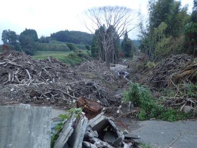 昨日は黒岳を歩き、今日はその疲れを残し近くの花牟礼山を歩く。男池から白水鉱泉方面へ車を走らせ湯平方面へと向かう。途中で豪雨の被害を目にする。自然の破壊力は凄まじい。林道に入ると以前来たときとは違って豪雨や台風のせいか、樹の枝や石ころが走行を邪魔する。私の愛車は容赦なく傷つく。それでも除けきれないような倒木は車から降りて払いのける。最近、この道を通行した車がないのかと思うほど道は荒れている。