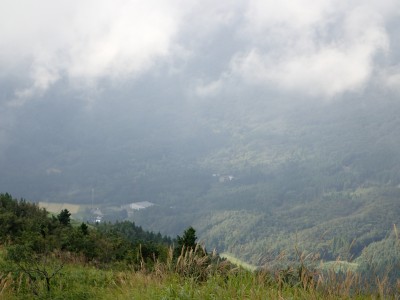少し下った場所からガスの切れた下界を見ると男池の駐車場らしき場所が見えた。と言うことは向こうからもこの花牟礼山が見えるはずである。牧野道を軽快に降っていると反対から登山者が歩いてきた。そして車が見えるところまで戻ると何と草が刈られていた。いつの間に・・・・。まさかさっきのと登山者?と思ったが、乗用車が1台駐車していた。先ほどの登山者の所有だろう。 草刈りは、きっと別の人だろうとY氏と話しながら帰路についた。玖珠で前から気になっていた店で昼食をとり無事帰宅。この2日間、自然に山にY氏に感謝!