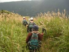 | 集合写真(写真提供MORIさん) | 山頂の小さな祠と賽銭壷 | 帰路は往路を |