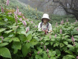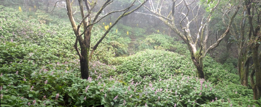 | ▲霧の中のミカエリソウの群生 | ||