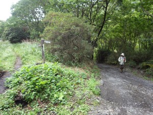 | 石が多いので歩きにくい | 坊ガツルと吉部への分岐T字路(13:38) | 吉部の標識 |