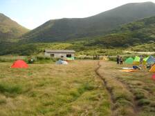 避難小屋を右にし、すぐに大船山と平治岳への分岐になります。平治岳の方へ進みます。平坦ですがが足元が悪く注意して歩きます。ここで「一人一石運動」が行われているようで、ぬかるんでいる道に石を置いて歩きやすくするために一人一個の石を運ぼうという運動です。山の際の緩やかな道を上り、坊ガヅルから約40分で大戸越と吉部登山口との分岐(T字路)の標識があります。ここよりすぐに急登となりさらに足元が悪くなります。30分ほど喘ぎながら登ると左手に平治岳が現れ、急に視界が開け広場に飛び出ます。ここが大戸越です。右手は大船山への入り口です。 ここで今回はちょっと早いけど食事にしました。九重はもっと涼しいと思っていましたが太陽の日差しは強く、結構暑かったです。その炎天下の中、私だけ単独で平治岳を往復して来ました。暑さのせいで登りはきつく往復60分かかりました。 さて帰路はさきほどのT字路まで戻ります。後は道なりですが標識がほとんどないので踏み後とテープが頼りです。しかし、川沿いに下ることについては間違いないのであまり心配いらないと思います。何度か川原(水がない)横断し、急な坂を下ると一旦林道に出ます。林道を1Km歩くと左手に「吉部登山口近道」と小さな標識があるので再び山道を歩きます。途中、背の高さまであるクマザサが行く手を阻みましたが何とか川に出て素晴らしい景観を味わいながら下っていくと橋が現れ林道にでます。左手に林道を少し歩くと上りの時の登山口です。 コースタイム 吉部登山口−(60分)−暮雨の滝−(50分)−坊ガヅル−(10分)−避難小屋−(30分)−T字路・吉部登山口との分岐−(30分)−大戸越−(40分)−平治岳山頂−(20分)−大戸越−(30分)−T字路・吉部登山口との分岐−(40分)−林道−(20分)−吉部登山口近道標識−(30分)−橋−(5分)−吉部登口 ※休憩・食事の時間を含め8時間のコースです。 おみやげ 湯布院でカフェと民藝(民芸)の店を6月にオープンした知り合いがいるので立ち寄ることにしました。ネルドリップの珈琲はまろやかでなかなかのもんです。 お店は住まいと一緒になっていて、温泉を引いているとのこと。今回は特別にお風呂によばれました。いやーラッキーでした。北原さん、ありがとう。ここの民芸品は奥様が現地に行って直接仕入れた厳選品です。「少し高く感じるかもしれませんが、本物の地元の民芸品ばかりです。最近は東南アジアからの輸入品が多くなりました。」と奥様。家内も気に入って何点か買いました。 「カフエ民藝たゆたふ」 |