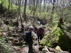 | 大船林道に出る | 小窓への取り付き地点 | 集材路入り口 |