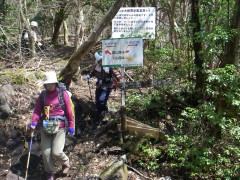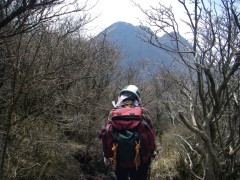 | 大戸越から見上げた | 標識あり | 奥に見えるのは三俣山 |