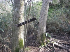 | 道は西へと方向を変え | 大船林道に出て橋を渡る | この標識がある |