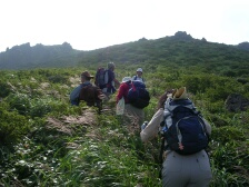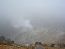 | 北側下方は噴煙が上がっている | それぞれ何かを感じて | 気持ちの良い稜線歩き |