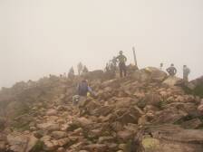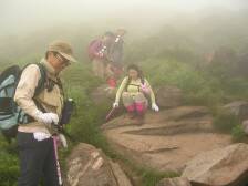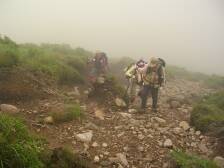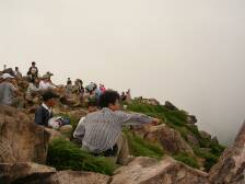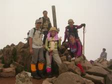 | 皆で記念撮影 | 一瞬ガスがなくなって喚声 | 下山は急降下 |