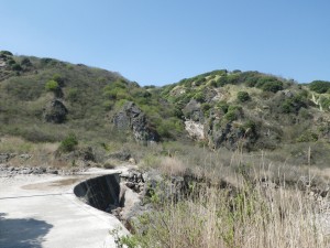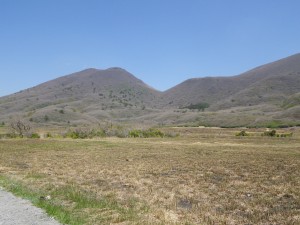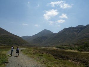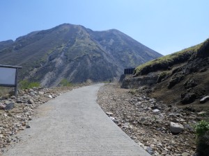 | 黒岩山・泉水山の稜線がきれいである | 多くの登山者が下山してくる(法華院に宿泊したとか) | コンクリートの道を行く |
