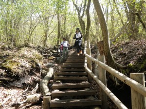 | いつのまにか石畳になっていた | スミレもたくさん咲いていた | 木道もできていた |