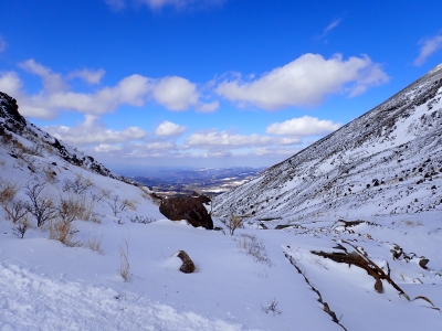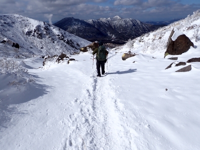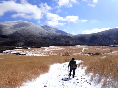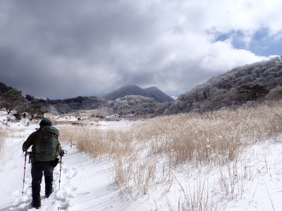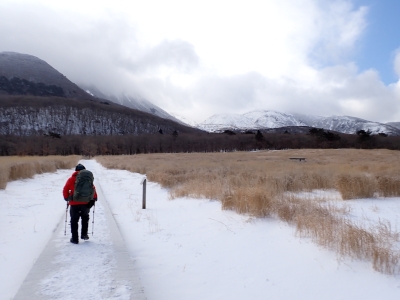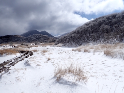 雪の九重 牧ノ戸からのルートを過去歩きましたが 長者原からのこのルートもなかなかでした 特に北千里浜は素晴らしい景観でした |