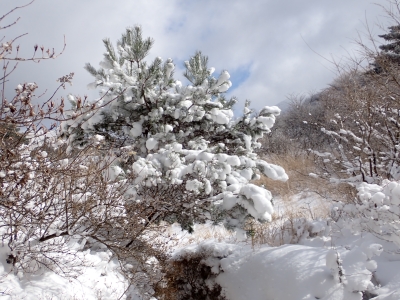 | キラキラと輝いている | 落葉樹の樹林帯は雪が積もる | 休憩タイム | |
