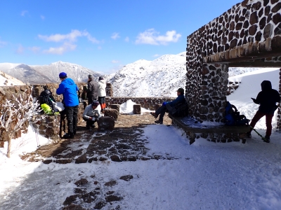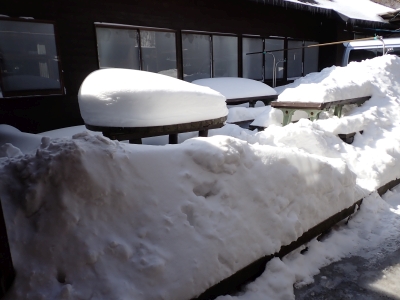 | 坊ガツルを眺めながら | 法華院温泉に到着(11:52) | テーブルに積もった雪 | |