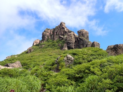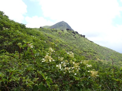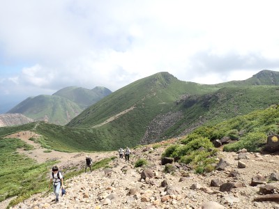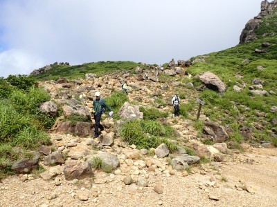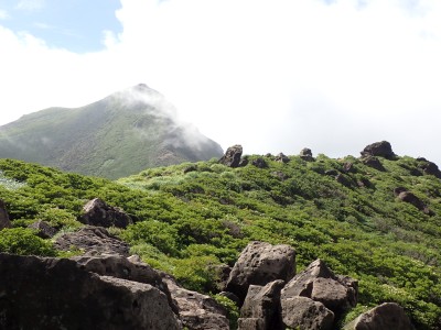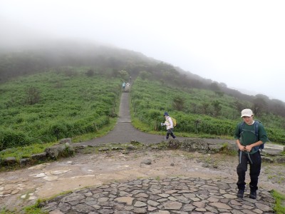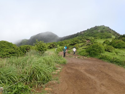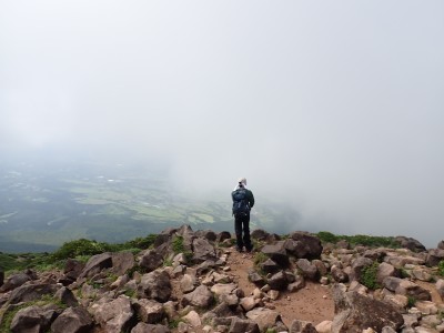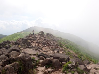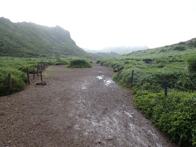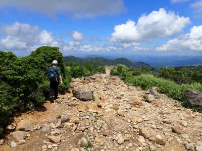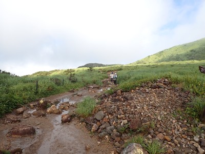 今年の「山の日」は、孫と山に行くことにした。行く先は九重だ。孫にとっては初めての九重なのできっと感動するに違いない。昨日、仕事の帰りに孫を迎えに行き、今朝早くに出発。途中で玖珠の道の駅でトイレ休憩をしてコンビニで朝食と昼食を仕入れて四季菜ロードを経て予定通り7時に牧ノ戸峠に到着、昨日までの台風の影響だろうか、駐車スペースは未だ結構空きがある。車から降りると少々肌寒い。準備をして登山口に立つとOBSと書かれた撮影機(放送用カメラ)を肩にかけた方が、撮影を始めていた。今夕の山の日のニュースになるらしい。第一展望台までコンクリートの道が続くが、歩き始めにこの坂は結構きつい。第一展望台に着くとガスで覆われて目の前には三俣山のシルエットがわずかに見えるだけで由布岳などいつも目にする峰は全く見えない。第二展望所でも阿蘇山が見えるはずだが、ガスって見えない。沓掛山から広い登山道になる。休憩ポイント(ブロコッリーの丘?)まで来るとガスは抜けて星生山が姿を現した。扇ヶ鼻分岐で一休みして西千里浜を見ながら久住山目指す。昨日までの雨で道は湿地帯のように水分を含んでいる。久住分かれ標識手前の広場には、避難小屋とトイレがある。ここから久住山への急登を考えると家内はここで待つと言うので孫と二人で登頂することにした。そして久住山までは息をつきながらガレ場を登り山頂標識に無事到着。孫がもっと喜ぶかと思いきや、あまり顔に出さないので聞くと「いや嬉しいよ」とあまり嬉しくなさそうに言う。山頂では登山口でお会いした放送局の方がいて子どもたちにインタビューをすると言うのでしばらく眺めていた。今夕テレビで放送されるとのことで、もしかして私たちも映っているのではないかとつまらない期待をして下山する。山頂からガレ場をハイピッチで家内の待っている避難小屋に戻る。休憩して往路を戻るが、すっかりガスは抜けて青空も広がり展望を楽しみながら下山した。さて、ニュースであるがもちろん我家に戻ってテレビを見ても大分放送は見れない。そこでネットで検索すると動画が出てきた。ほんの30秒ほどの子どもと若人へのインタビューが見れただけであった。