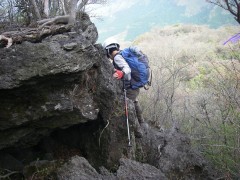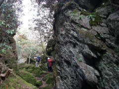 | 岩壁の際を歩く | ミヤマシキミ(深山樒) | ツクシシャクナゲ(筑紫石楠花) |