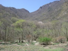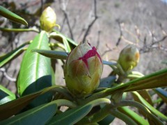 2009年4月19日(日)晴れ 「自然観察とボランティアの山の会」の5月例会登山はシャクナゲの鑑賞登山という事で九重は黒岳の計画だ。今日はその下見ということで代表のYさん、CLのTさん他4名の6名で出かけることになった。例会登山はバスの乗り入れが一番重要だ。色々悩んだが、下見では、男池から高塚山を目指し、前岳へと縦走し、白水鉱泉へと下山するルートを行くことにした。午前9時30分、男池駐車場に着いた私たちは2手に分かれることになり、私とTさん、Kさんの3人が縦走をすることになった。 <コース詳細> 男池登山口で清掃協力金を支払って、澄んだ水の川を渡り、登山道を歩きます。なだらかな自然林の道です。石が多くなり柵を抜けると「かくし水」です。とてもおいしい水です。しばらく緩やかな勾配で谷間を行きますが、やがて勾配もきつくなり谷間からはずれていきます。少し下り、上り返すと再び下り始め、大きな湿原のような場所が見えますが、そこがソババッケです。西を見ると大戸越を境に右手に平治岳が見えます。一息ついたら平坦な道をしばらく歩きます。やがて巨岩が多くなり石の露出した道となります。この辺りからツクシシャクナゲの群生地ですが、今年は花芽がほとんどないようです。やがて夏でも氷があるという風穴に着きます。まっすぐ南に行くと岳麓寺方面、西側は大船山への急登、東に急登すると黒岳は高塚山へと進めます。この小石の滑りやすい急斜面をすばらく喘ぐと平坦な道となり、天狗岩と高塚山の分岐天狗分かれに突きあたります。今回は長丁場なので天狗岩は行きませんでしたが、往復30分ほどです。分岐から左手(北側)進み急斜面を一気に登るり振り返ると天狗岩が見えます。灌木をくぐりぬけると山頂です。山頂では三俣山や大船山の西側が望めます。高塚山から今度は前岳を目指します。北側に縦走路の登山道があります。シャクナゲの中を下り、灌木の中を右に巻くように歩き、岩の上を登りながら歩きアップダウンしながら急斜面を降ると標識があります。「上台うつし」とあります。巨岩に挟まれた間を抜けると目の前に岳が現れます。(次ページへ) |