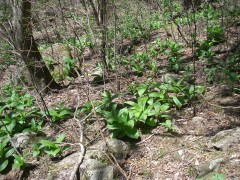 | ソババッケより大戸越を見る | ヤブレガサの群落 | 巨岩が多くなる |