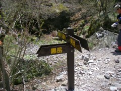 | バイケソウの群落 | 風穴にある分岐標識 | ガレ場の急登を喘ぐ |