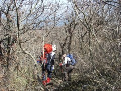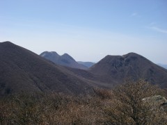 | 遠くに三俣山 | 高塚山山頂にて | 山頂の北側に縦走路がある |