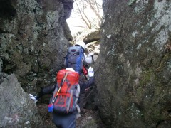 | 巨岩の間を歩く | 前岳か? | オオカメノキ |