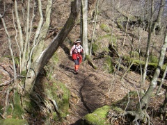 | 急斜面を喘ぐ | 天狗との分岐(天狗分かれ) | 明るいのに苔の多い場所だ |