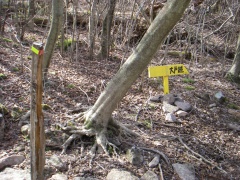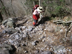 | 浮石が多く落石にも注意 | 一旦平坦な場所に出る | 板状に石に驚く |