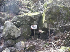 | 岩がごろごろしている | 高塚山へ1200m | 人が入れるほど大きい |