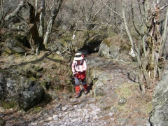 | 苔のついた石がなかなか良い | 平坦で歩きやすい | 岩が多くなってきた |