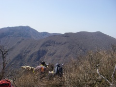 | 高塚山山頂 | 天狗を背に | 大船山を見ながら昼食中 |