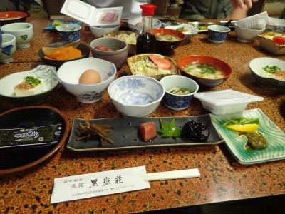 翌日、朝食を終え、宿にお別れをする。この二日間、自然に山にそして宿の方たち、仲間に感謝!!(コースタイム省略) |
